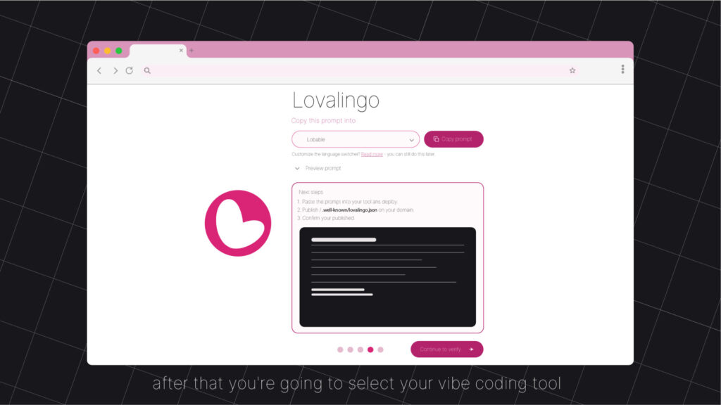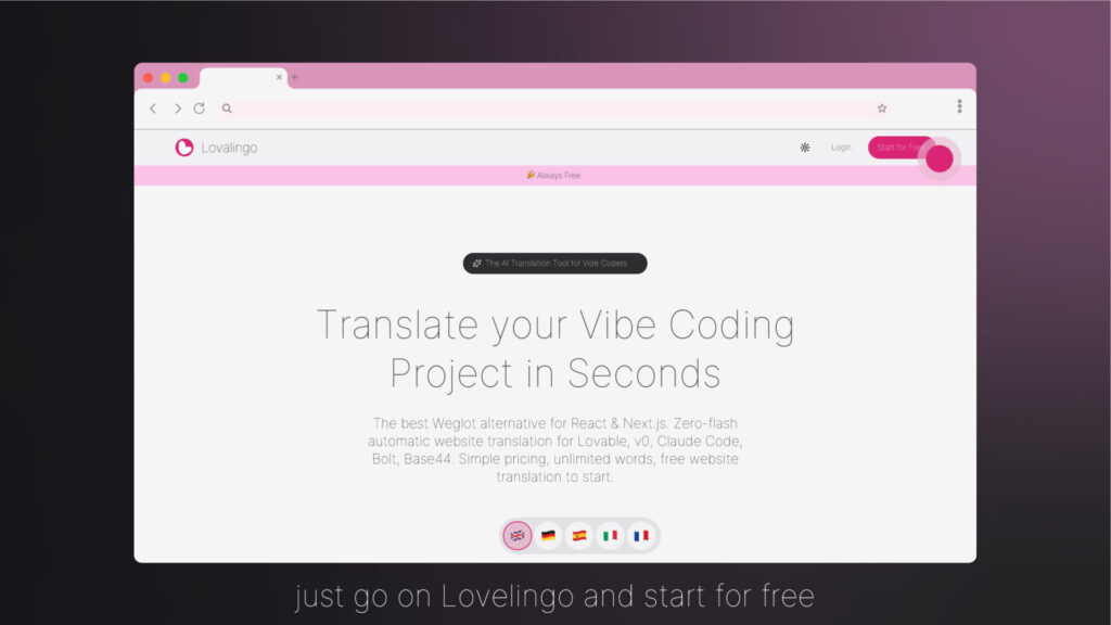 A motion graphics explainer video for Lovalingo, an AI translation tool for developers. The video shows how the product works in a clear and modern 2D style, with smooth animation and clean typography following the brand Identity.