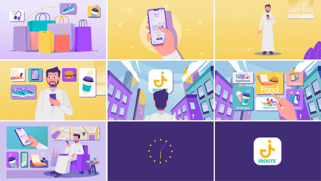 2D motion graphics and character animation video. I fully animated this project from scratch as part of a course tutorial, showcasing the features of the JRoute shopping app in a simple and clear way.
